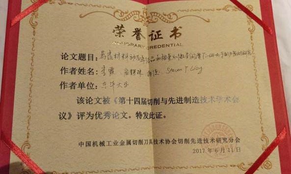 201769日-612日由中国机械工业金属切削刀具技术协会切削先进技术研究分会主办,哈尔滨工业大学(深圳)机电工程与自动化公司承办第十四届切削与先进制造技术学术会议在深圳召开。本次大会有来自清华大学、上海交通大学、华中科技大学、山东大学等百余所高校近600余师生参加会议,会议旨在交流切削与先进制造技术领域中的新理论、新技术、新方法和新装备方面的最新进展和研究开发成果,从而促进我国制造业的快速可持续发展。公司青年教师季霞等参加本次学术活动,并宣读论文。季霞等老师的《考虑材料动态再结晶和相变的微量润滑Ti-6Al-4V车削力预测研究》论文获得“第十四届切削与先进制造技术学术会议”优秀论文奖。
