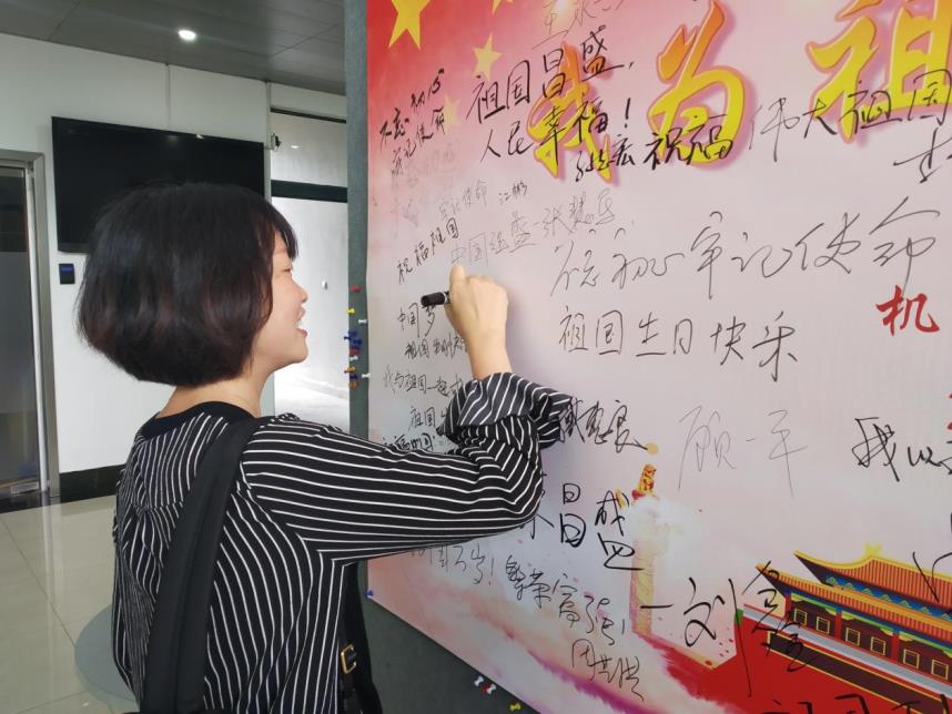 参加本次活动的老师,有现任公司领导,也有卸任的公司领导;有在职的老师,也有已经退休的老师。激情心头涌,敬意笔尖流,在三个小时的时间里,大家将祝福墙壁写得满满当当,将对祖国的祝福与赞美表达得淋漓尽致。