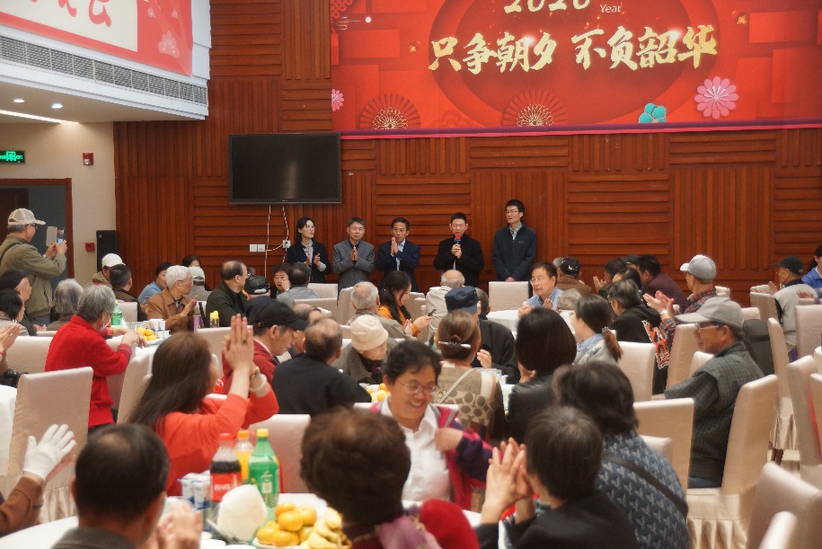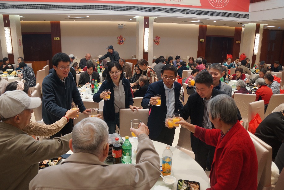 余热未尽献,老骥偷闲。古梅无他求,点红暖人间。一百一十多位退休职工从上海各区赶来,欢声笑语、齐聚一堂。王书记、单经理等公司领导逐一问候每位老同志,向其表达全院师生的关心与问候。