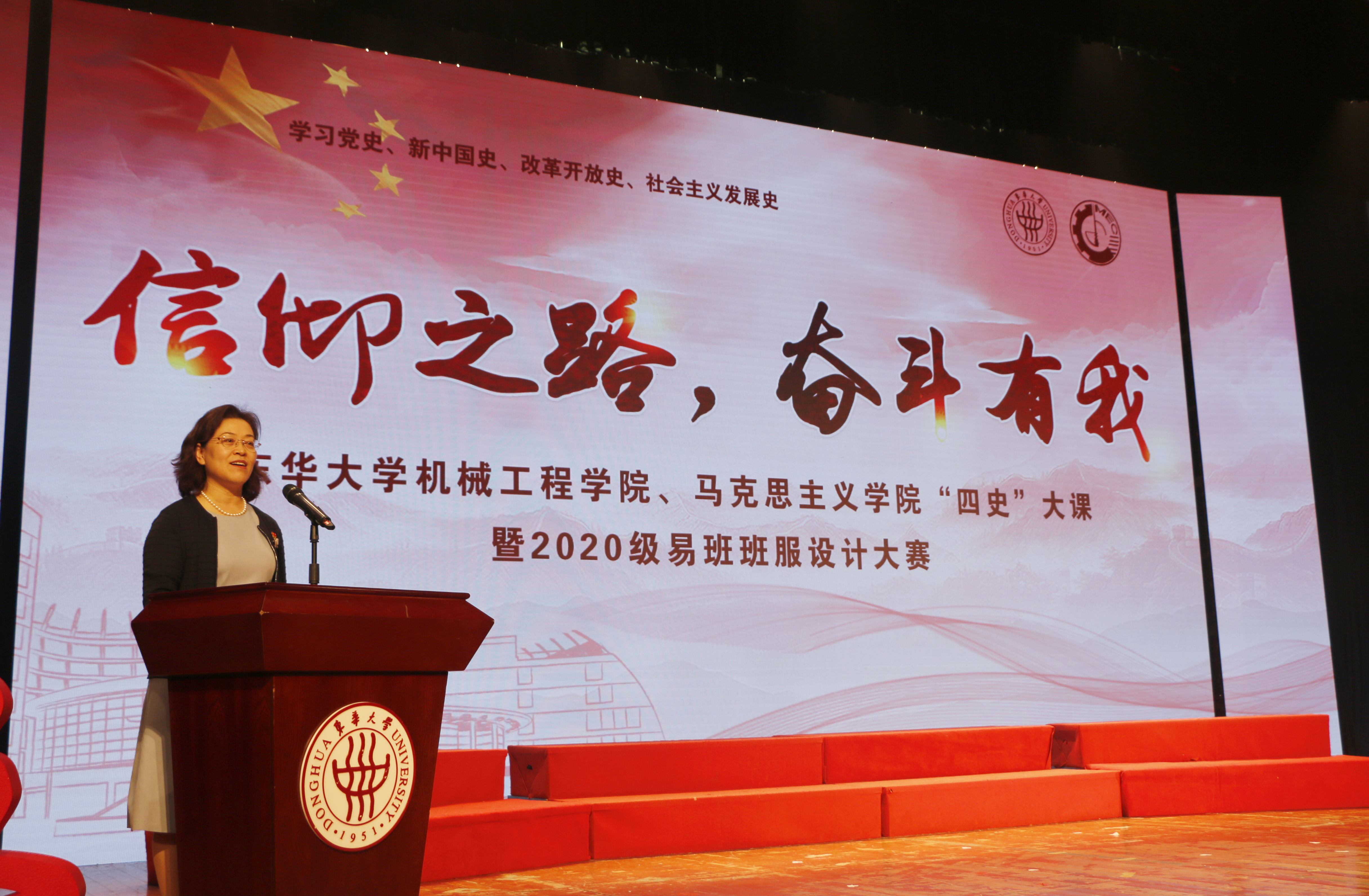 “日月辉映,孕育灿烂人类文明;经天纬地,织就绚丽锦绣中华……”伴随着东华之歌》悠扬旋律,William威廉英国官网、马克思主义公司“信仰之路,奋斗有我——‘四史大课”于113日在松江校区锦绣会堂拉开帷幕。从老一辈华纺人到新一代东华人,穿越时空的记忆,以共同的“东华人”身份,演绎党的辉煌历史在砥砺奋进中续写新的时代华章。公司党委副书记崔运花出席大课并致辞,机械工程公司党委书记王新厚、马克思主义公司党总支书记戴叶萍、党委组织部副部长、党校副董事长徐玥、员工处副处长赵彦明及两公司党员师生、全体20级新生参加大课。
