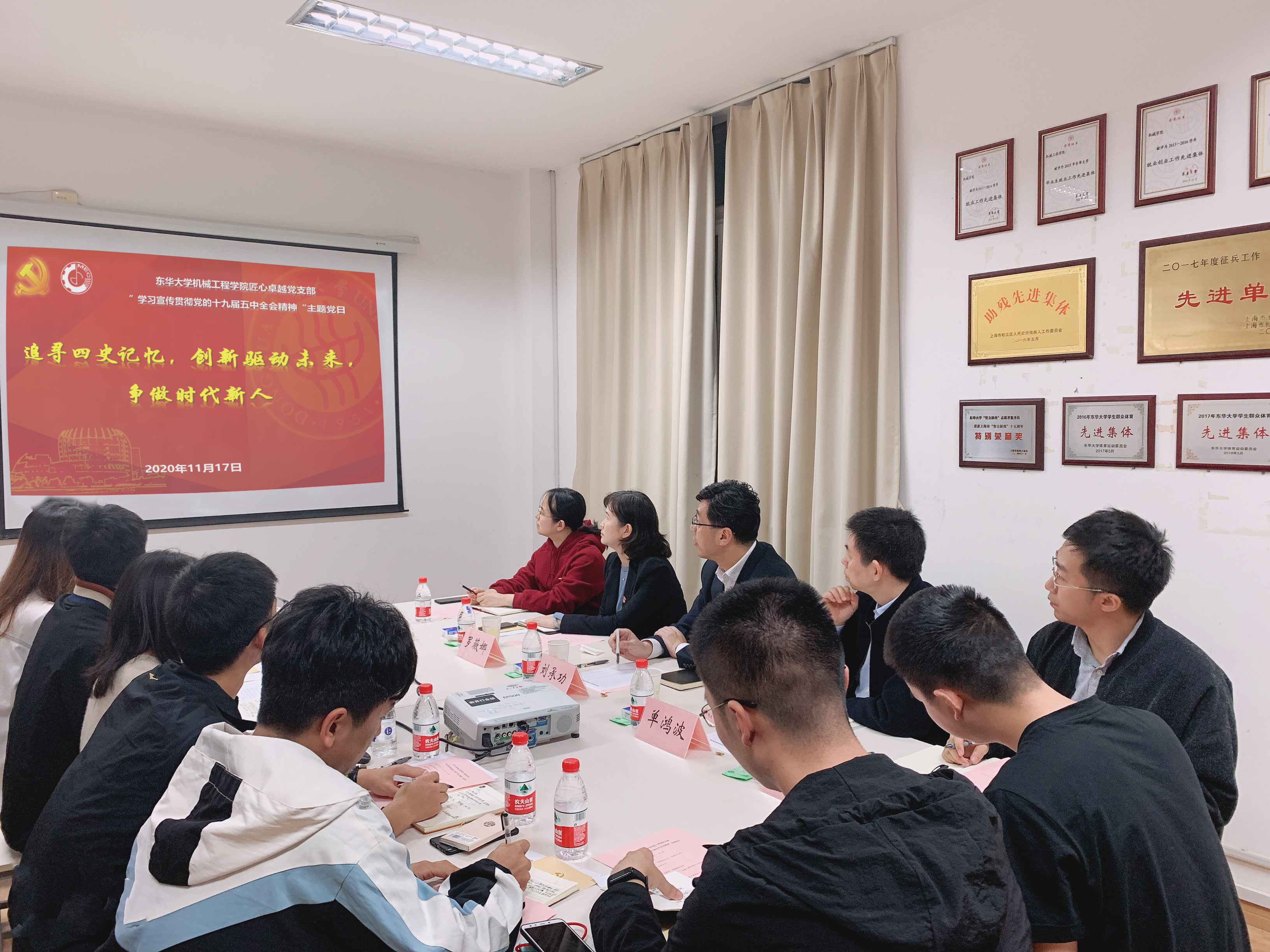会上,支部书记李陈新讲授以《传承东华精神,迎接建党百年》为题的微党课,通过回顾williamhill威廉官网伴随国家发展而不断成长的历程,深入解读东华校训、东华人物与东华精神,引导支部党员在“四史”学习中领会党的十九届五中全会精神的重大意义。支部党员郄熙生动讲述了一名进博会新闻中心“小叶子”的悠悠进博情,不仅见证了祖国高速发展的繁荣昌盛,更读懂了中国青年的责任与担当;支部党员张迅迅结合参与科创竞赛的经历,分享了学习十九届五中全会精神的体会认识。