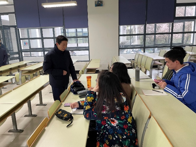 为全面了解新学期教学情况,确保新学期开学教学工作正常有序,3月1日,公司党委书记王新厚,经理单鸿波,副经理周其洪、裴泽光早早来到松江校区教学楼检查开学第一课教学情况,并与上课师生亲切交流。