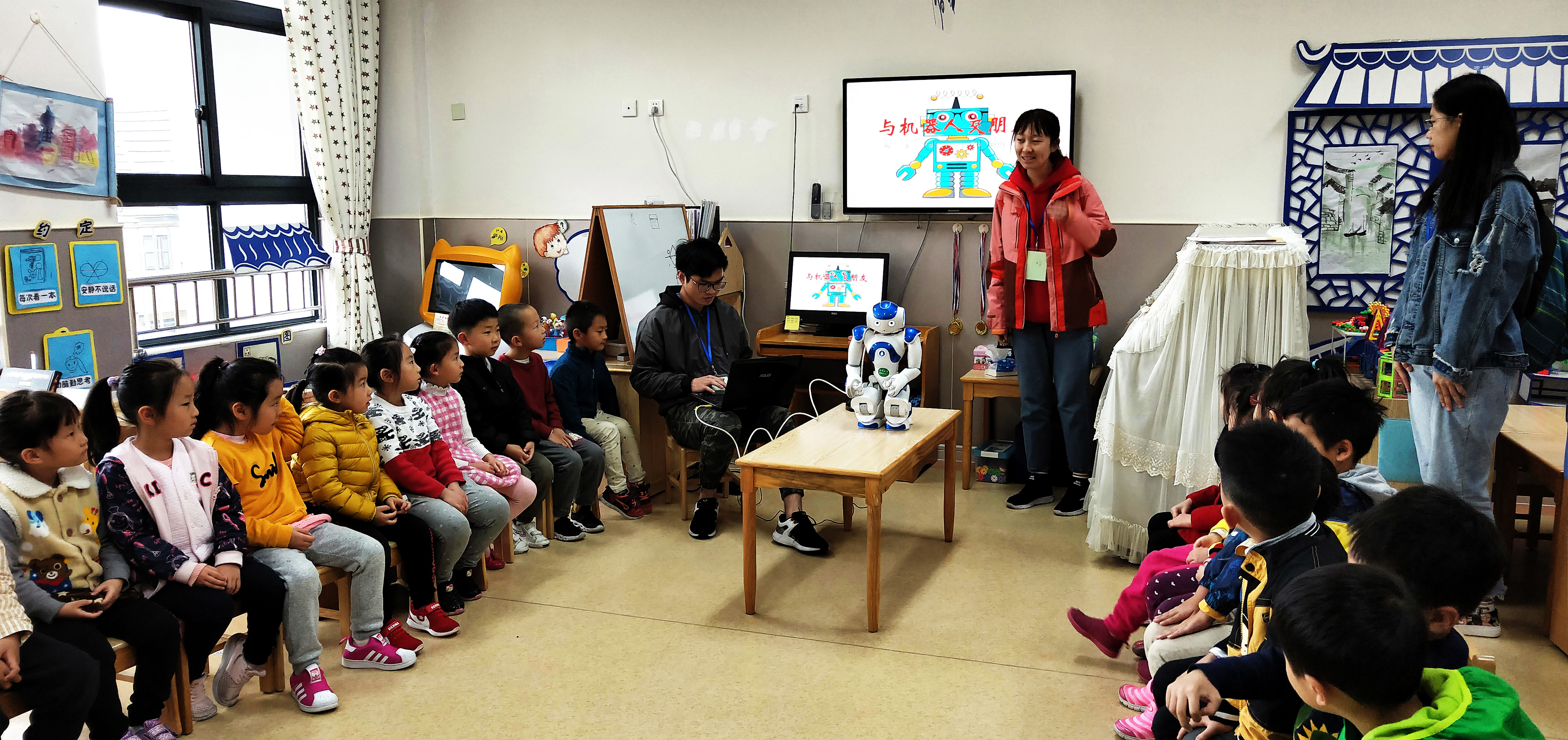 (前往龙马幼儿园开展“与机器人交朋友”志愿服务)