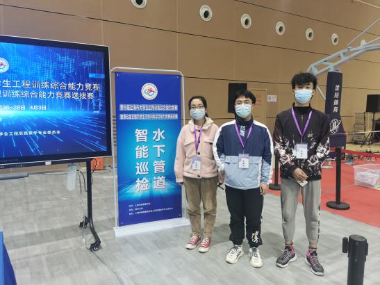江彬和赵旺初老师指导,刘亮亮、李正楠和杨淑丞同学完成的水下管道智能巡检赛项获得特等奖;
