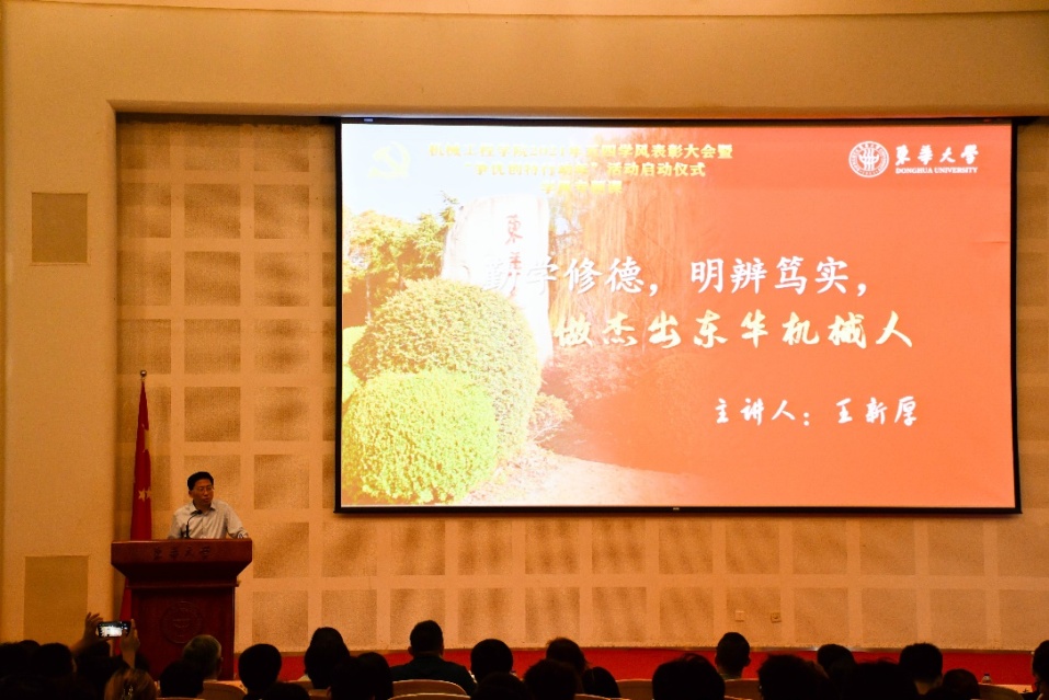 机械工程公司党委书记王新厚上学风专题课,他指出,重视学风建设是党的优良传统,弘扬优良学风是全面深化改革的必然要求,更是建设“双一流”高校的迫切需要。学风既是大学精神和文化的集中体现,也是衡量和评价一所大学办学品位和育人环境的重要标志。学风建设早已融入到校训之中,“崇德博学,砺志尚实” 在于激励全校师生修身立德、博学专攻、磨心砺志,求真求新,德才兼备。他强调,弘扬优良学风宜多管齐下、常抓不懈,一是要大力弘扬追求真理、严谨治学的求实精神;二是要大力弘扬甘为人梯、奖掖后学的育人精神;三是要大力弘扬志存高远、刻苦钻研的求学精神。他希望公司师生携手同行,践履东华精神,让“中国智造”“中国创造”扬帆起航,做杰出东华机械人。