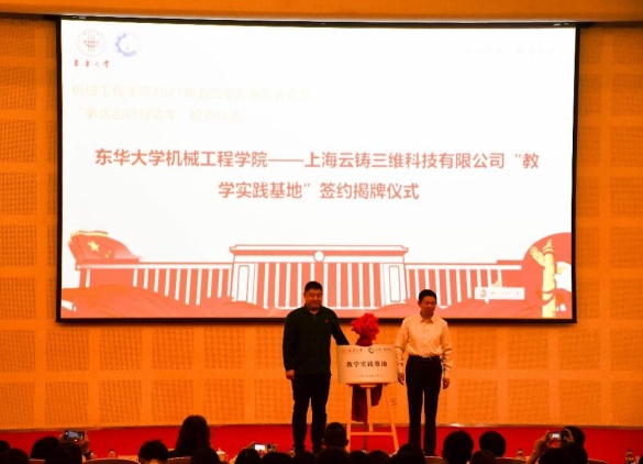 William威廉英国官网经理单鸿波与上海沪工焊接集团股份有限公司人力资源总监唐志娟签订“教学实践基地”续约协议,和上海云铸三维科技有限公司总经理李俊锋签订合作协议并为“教学实践基地”揭牌,通过校企密切合作,进一步提升公司学术与就业的核心竞争力。