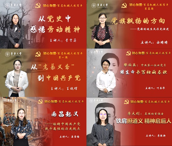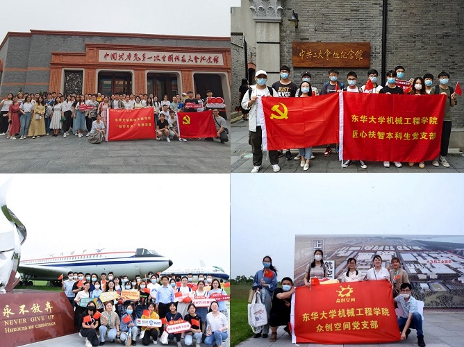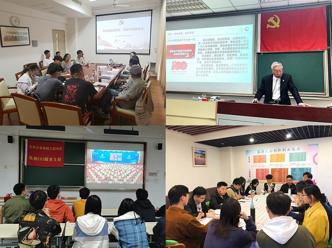 创意互动课。组织员工党员从党的百年风雨、百年奋斗、百年辉煌和奋进新时代的滚滚历史洪流中,从以奋进之东华筑梦祖国的时代目标中,汲取营养,激发灵感,创作讴歌党、讴歌祖国、讴歌社会主义的艺术作品。筑梦创设研究生党支部以22幅创意海报描绘党的百年奋斗征程,举办“从一大到十九大:千秋伟业,百年芳华”创意设计展览;智能制造党支部运用VR技术打造实境课堂,赋能党史学习教育“科技味”,引领师生穿越百年风雨,见证中国共产党带领中国人民不懈奋斗的光辉历程,镌刻百年初心。