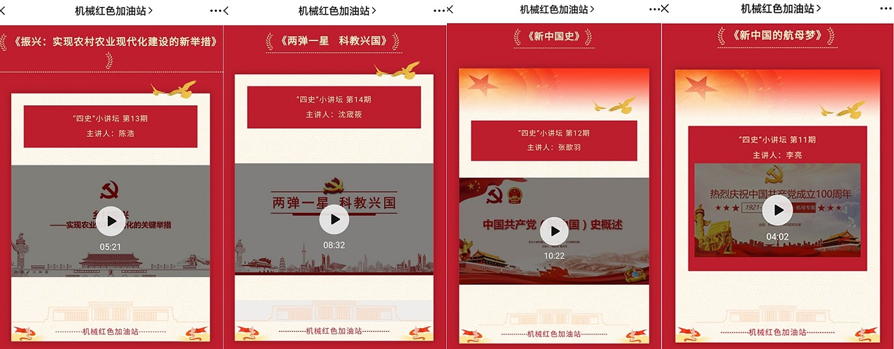 员工领读明史有声。充分发挥员工党员在理论素养、党性修养方面的“头雁”作用和“领航”功能,深入推进“党员思想家”计划,在机械红色加油站平台打造“四史小讲坛”朋辈宣讲云微栏,引导员工党员聚焦党史、中国精神、中国制度等主题录制微视频,已录制《两弹一星 科教兴国》《乡村振兴》《新中国的航母梦》等40余期微视频;聚焦《共产党员应知的党史小故事》党史书籍录制有声读物,已录制《李四光:把入党作为生命新起点》《邓颖超的两份遗嘱》《任弼时:时刻把群众利益放在心上》《彭德怀的“四个不准”》等30余期微音频,鼓励员工党员全员“开讲”,用理想和信仰之光凝聚群众。