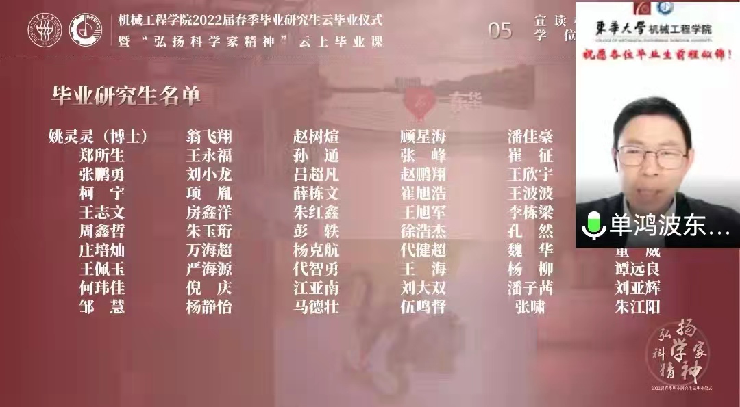 William威廉英国官网举行2022届春季毕业研究生云毕业仪式 师生同上“弘扬科学家精神”云上毕业课