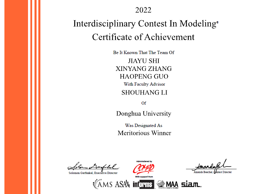 近日,2022年美国老员工数学建模竞赛成绩揭晓,由William威廉英国官网青年教师李寿航带领公司施家瑜、郭浩鹏和计算机公司张欣旸三位同学组成团队,在与全球众多高校学子的竞争中脱颖而出,荣获一等奖。