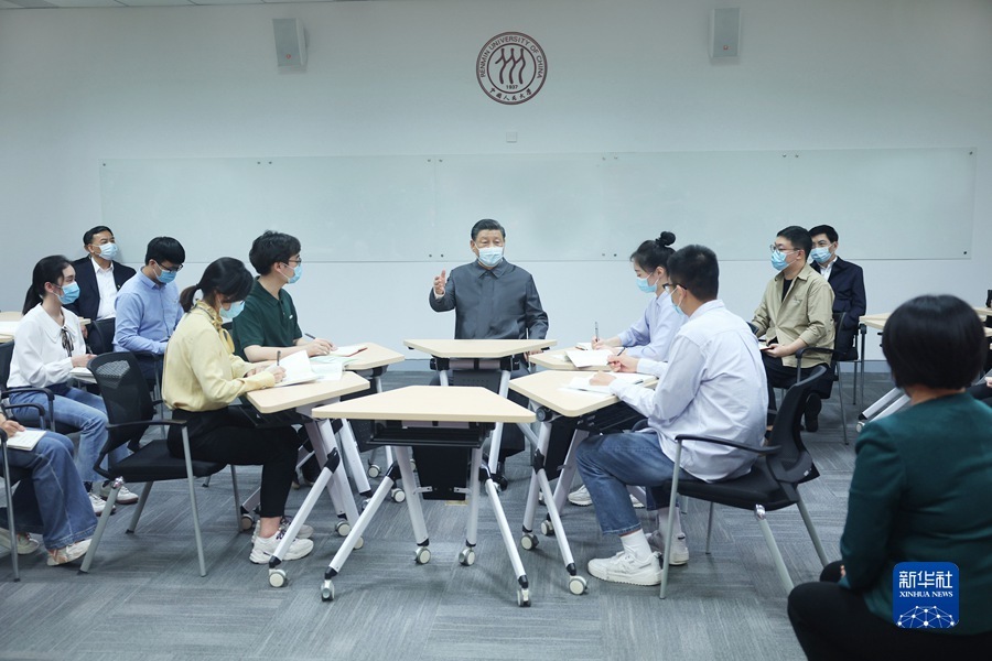 4月25日上午,中共中央总书记、国家主席、中央军委主席习近平来到中国人民大学考察调研。这是习近平同师生代表座谈并发表重要讲话。新华社记者鞠鹏 摄
