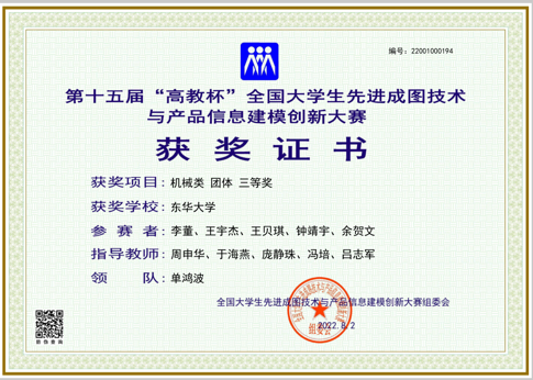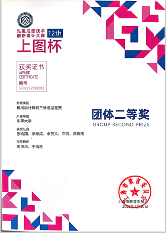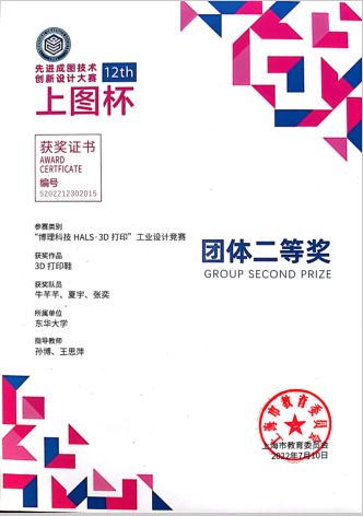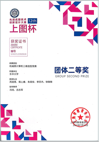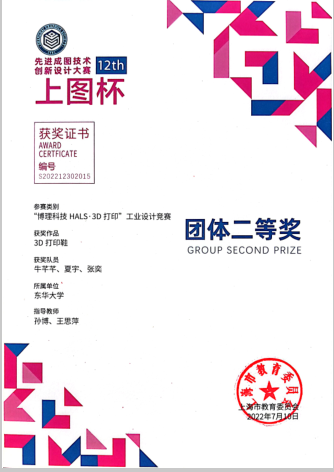 2022年5月,由上海市教育委员会主办、上海市科学技术协会支持,由上海市图学学会与williamhill威廉官网承办的第十二届“上图杯”先进成图技术与创新设计大赛成功举行。公司机械工程及工业设计员工共获得机械类团体二等奖2项,个人一等奖3项,二等奖12项;“博理科技 HALS-3D打印”工业设计竞赛团体二等奖6项,个人二等奖1项,周申华、于海燕、冯培、吕志军、沈琼、孙博、王思萍等获得优秀指导教师奖。