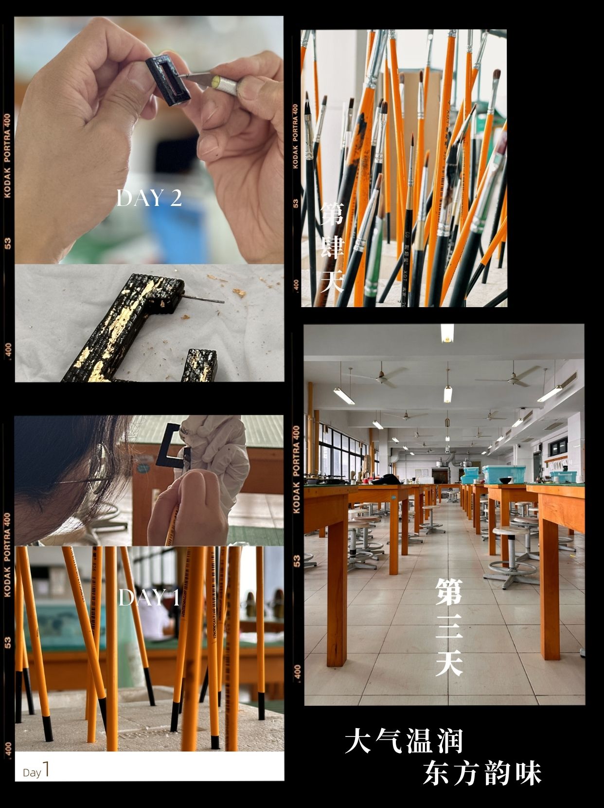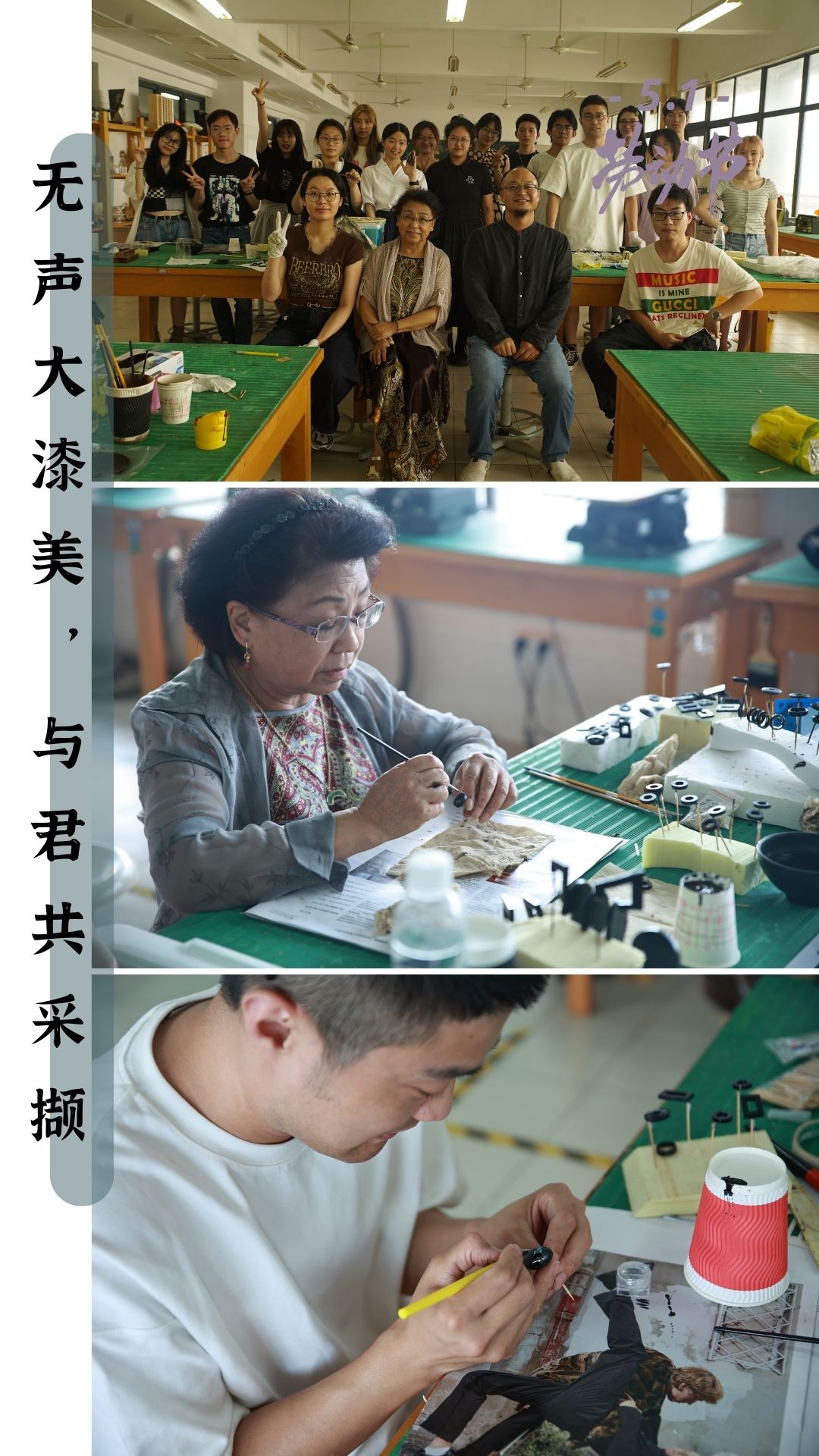 本次课程邀请到了法国第三代传承中国大漆工艺师苑黛曼老师以及职业大漆艺术家瞿德华老师莅临指导。该课程通过理论知识讲解与实践相结合的方式,在轻松的学习氛围中激发同学们的创作灵感,并鼓励同学们将工业设计专业知识融入到大漆制作过程当中,获得了老师和同学们的一致好评。