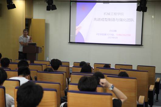 在学术报告环节,智能机械与机构创新设计团队孙志宏教授、高端与特种纺织装备及系统团队孟婥教授、微纳机电系统与集成电路学科团队刘向军教授以及先进成形制造与强化团队白云峰副教授分别介绍了团队的主要研究方向以及研究领域的精彩案例,并在与营员互动环节中解答了同学提出的专业问题。