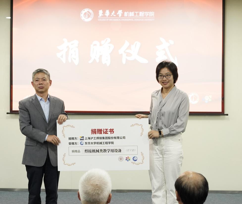从2019年至今,上海沪工焊接集团连续6年捐赠20余万元在公司设立奖学金,用于奖励公司优秀员工。今年沪工集团又为公司捐赠一批焊机类教学设备,机械公司副经理周其洪接受捐赠。