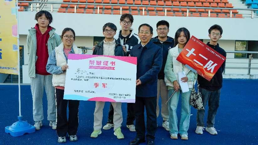 赛事结束后,进行了赛后拉伸,为运动员们提供了放松和恢复的时间。随后,颁奖环节在热烈的掌声中进行,王新厚为获奖团队颁奖,并高度评价了参赛师生的积极参与和出色表现,强调了团队精神和导学情谊的珍贵。