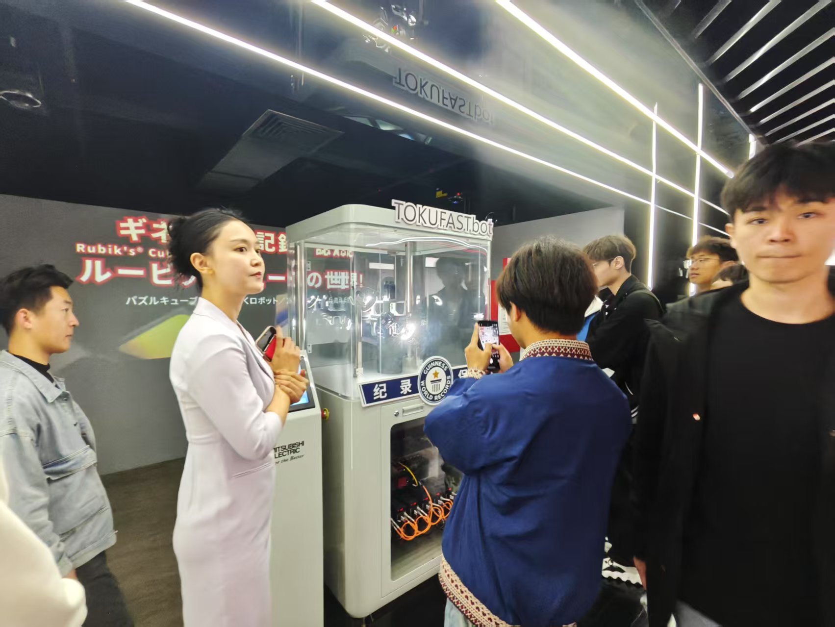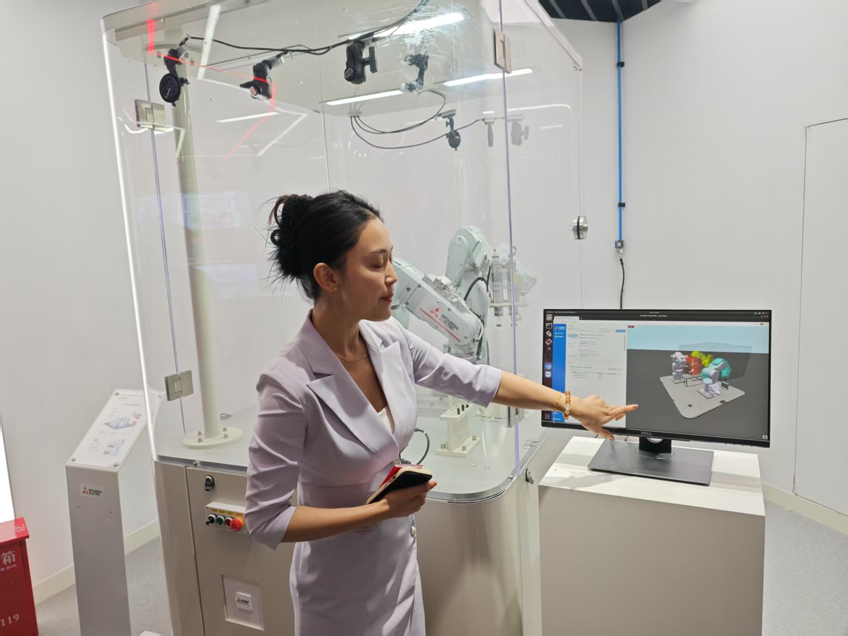 在智能机器人技术展区,团队重点观摩 TOKUFASTbot 高速机器人。其 0.305 秒还原三阶魔方的世界纪录级表现,背后是三菱电机独创的 AI 色彩识别算法与纳米级运动控制技术。在五轴联动机械臂工作站,员工通过力控编程实现柔性装配,系统学习机器人运动学建模与轨迹优化方法。