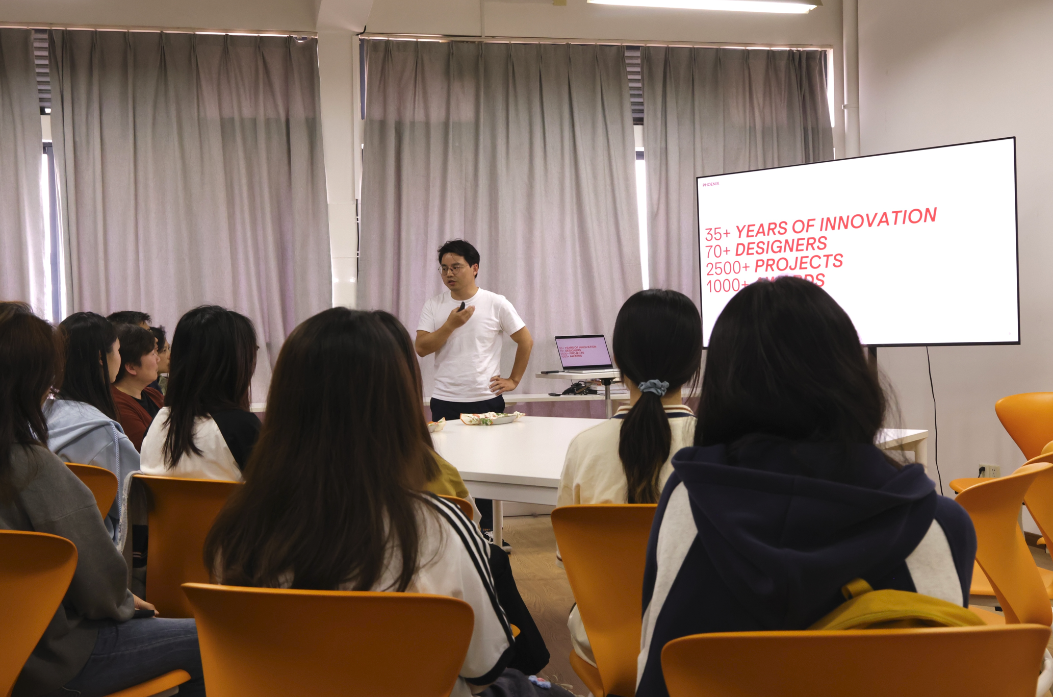 李利斌详细介绍了关于我们及校企交流计划。德国PHOENIX DESIGN凤凰设计成立于1987年,四十年来公司始终专注于工业设计、用户体验及产品创新,公司累计完成2500余个项目,荣获975项设计大奖,雄踞IF全球设计公司排行榜首,与苹果、索尼、保时捷等一起被评为红点全球年度最佳设计团队奖。从今年起,凤凰设计将为高校员工提供为期4 - 6个月的实习岗位,确保每位实习生能够完整参与至少一个实际项目。凤凰设计还特别设立了“Academy”专项计划。该计划紧密围绕高校课程实践或毕业设计等环节展开,旨在鼓励并资助年轻设计师开展大胆且有益的探索与尝试。